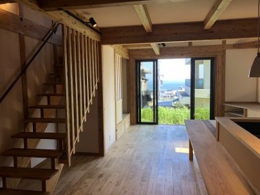 リビングから海を眺めることのできる淡路島の家