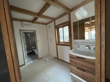 洗面所も通常より1mほど広いスペースを確保しました。